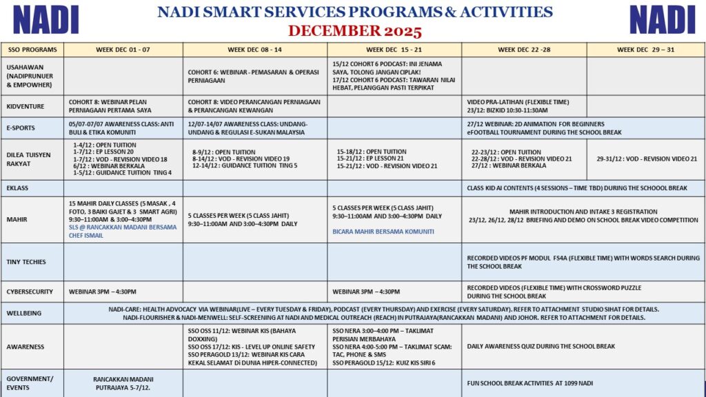 TAKWIM NADI SMART SERVICE DISEMBER 2025